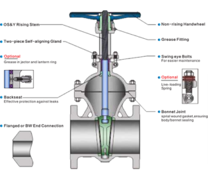 Gate Valves is another member of shut off/on valve family. What makes this unique is its disc movement is linear. The disc is either gate or wedge-shaped, which has an effective shut-off and on mechanism. Gate valve is primarily suited for isolation. While it is possible to use it as a throttling valve, this is not advisable as the disc may get damaged by media vibration. The surge of the media can damage the disc when gate valves are used half-closed in a throttling application.